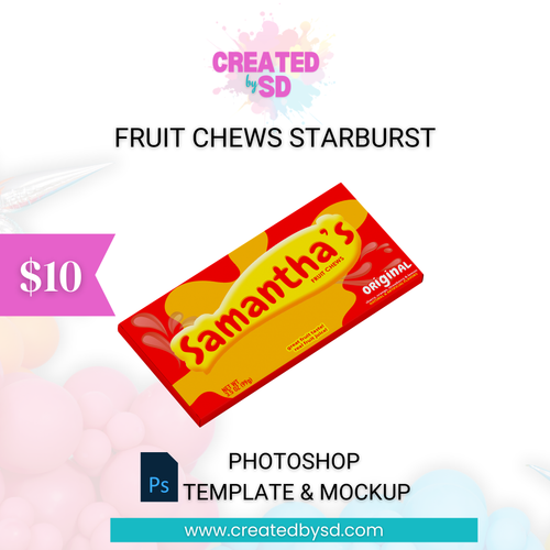 Fruit Chews Starburst Template & Mockup