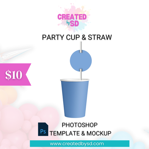 Paper Cup & Straw Template & Mockup